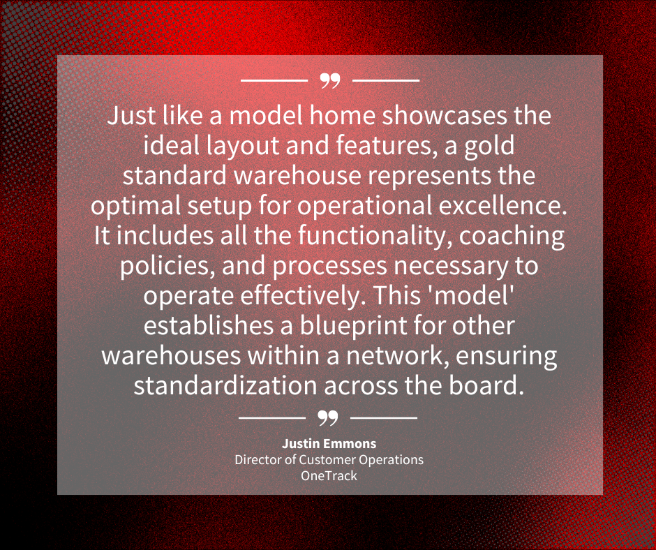 It's the ideal version—a benchmark for how every warehouse in a network should operate. As Justin Emmons, Director of Customer Operations at OneTrack, described:
